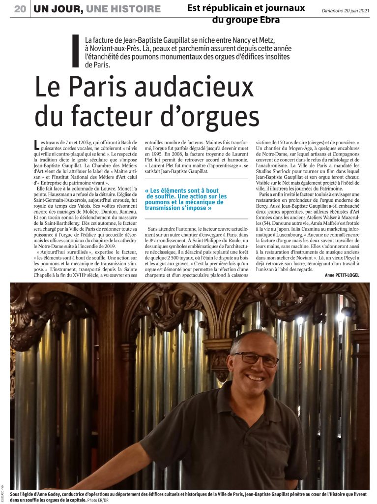 NOUVEAU sur le site : Découvrez la formation deFacteur d’Orgues VIDÉO : PARIS Eglise Saint-Philippe-du-Roule J.-B. Gaupillat Atelier Orgues Presse Liens Contact