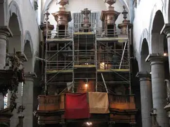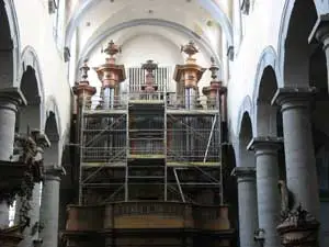 Enfin, en 1881, Pierre Schyven reconstruit à nouveau l’instrument en conservant une partie du matériel ancien. Le nouvel orgue dispose toujours de 38 jeux. Une machine Barker est installée.
