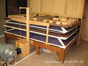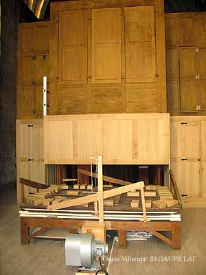 En cours de chantier, il a été décidé de remplacer le clairon 4′ d’authenticité hypothétique par un Plein-Jeu neuf en copie de ceux de JEANPIERRE.